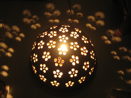 燈花会に合わせて午後7時からは照明を落として、いろいろな燈籠に灯が灯されています。吉野杉で作られた燈籠がたくさんありました。どれもとても風情があって綺麗でした。ただ、ロウソクではなく、電球だったのが残念ですが、それはまあ仕方ないですね。改めて奈良の工芸品の素晴らしさを実感しました。