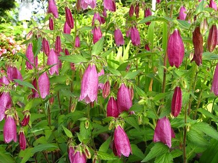 ホタルブクロの群生 白いのも一杯咲いていました。