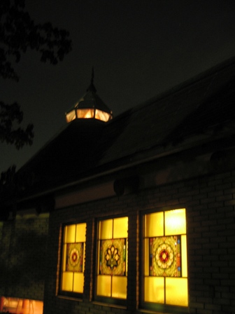 奈良ホテルの敷地内には、聖ラファエル教会があります。隣の庭園からもここの灯りが見えていました。近くに行って見ましたら、ライトアップされて、燈籠も飾られていて、とても良い感じでした。特にステンドグラスが素敵でした。こちらは辛うじて写真に撮れました。