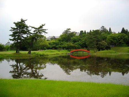 昼間の庭園 奈良ホテルや教会が見えます(5/28撮影)