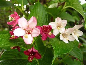 ハコネウツギ 傘を差しながらなので、撮影が大変です。足もガクガクですし。