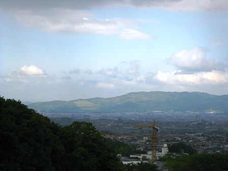 ふと下界を見ると向こうに若草山が見えて感激。