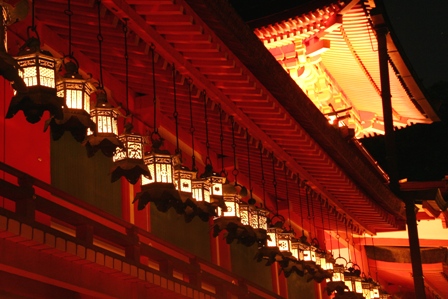 今日は特別拝観もしました。500円を払って、回廊を歩き、吊り燈籠を間近で拝見しました。ものすごい人で、ちょうどお正月のような賑わいで、係りの誘導に従って、立ち止まる事も出来ず、ただひたすら、前進のみでした。そんな中、必死で撮影しました。ほとんど手振れでひどい物ばかりでしたが、何とかマシな物が幾つかありました。