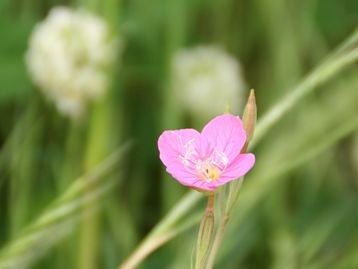 シロツメグサを借景にアカバナユウゲショウを撮りました。