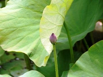 蓮の小さな蕾を発見。葉っぱもすごく大きくなって、もうすぐ開花ですね。