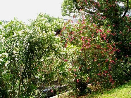 猿沢池の紅白のキョウチクトウ こちらも満開です。