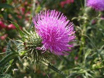 その足元にアザミも咲いています。