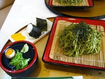 せっかく宇治に来ましたので、茶そばを頂きました。京阪宇治駅前のお店で。