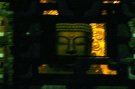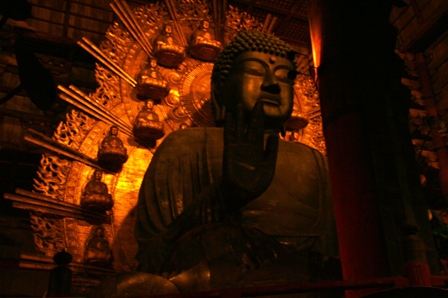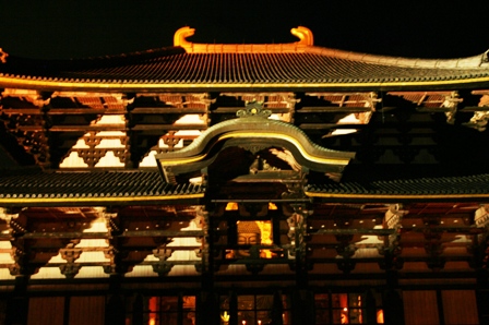 そして、その大仏殿に大仏様のお顔が見えるではありませんか。もうこのシーンを見たくてずっと楽しみにしていたのです。でも、本当に境内は暗くて、このお顔を写真に収めるのは大変でした。主人と娘の協力により何とか無事に撮影出来ました。