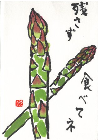 意外とこういうのが描きやすいんです。長女がグリーンアスパラ嫌いなんですよね。