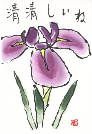 私が花ショウブを描いてる間に、ものの5分もかからないで、仕上げてました。