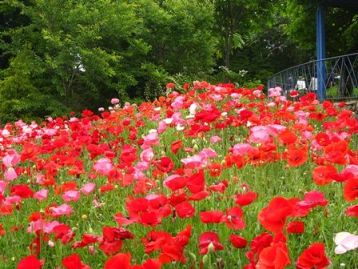 ポピーもバラもキショウブも、山の上だからこそ、一足遅れて見頃なんですね。来月六甲山に行く用事があるのですが、高山植物園に寄れる時間があるかどうか・・・。