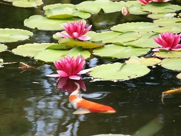 スイレンと鯉の2ショット