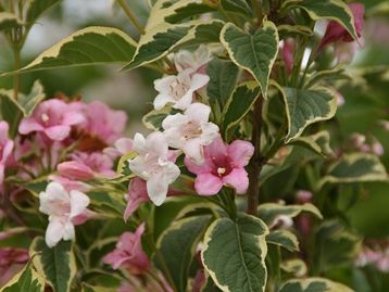 斑入りウツギ 珍しいですね。ハコネウツギ、タニウツギも咲いてました。