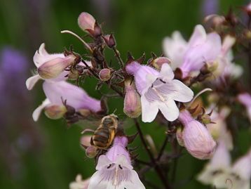 香りの庭に咲いていたお花 やっぱり蜂が寄って来てますね。