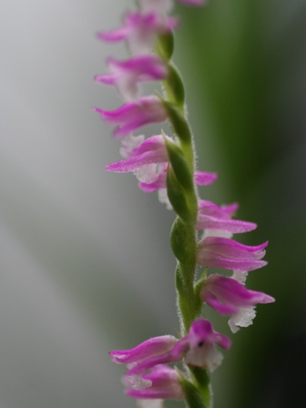 穂咲きのネジバナ、おもしろいですね。マクロ写真で見ると、立派蘭ですね。