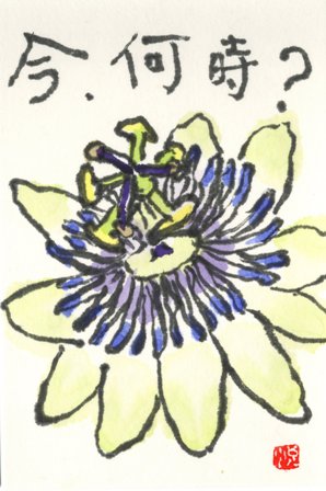 トケイソウ 我が家で咲いたので、じっくりと描けました。
