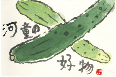 キュウリも描いてみました。この後鈴虫の餌になりました。