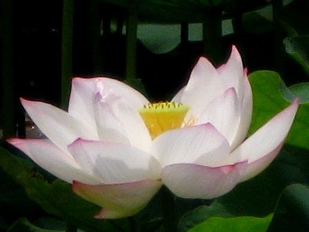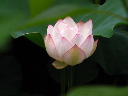 白い蓮みたいですが、良く見ると淡いピンク色ですね。