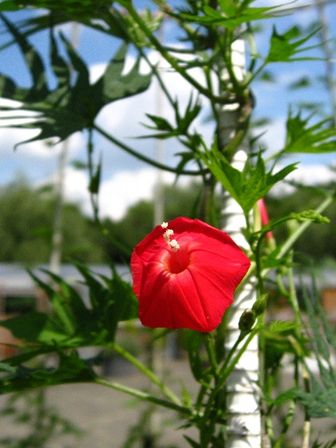 ハゴロモルコウソウは鮮やかな赤で可愛い。朝顔に少し似てるのかな?