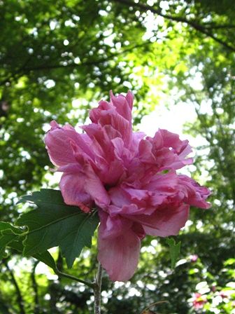 京都府立植物園のピンクの八重のムクゲもちょっと乱れてますね(笑)