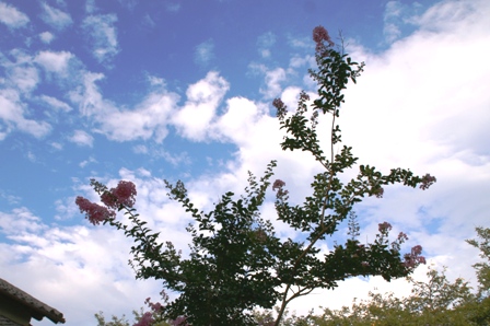青空の下のピンクのサルスベリ