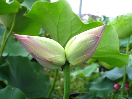 月曜日にあんなに堅かった蕾が水曜日には、少し大きくなり色づき