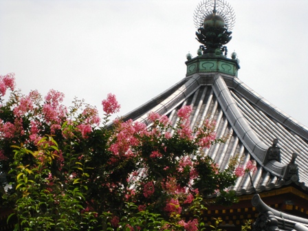 南円堂の屋根を借景にしたサルスベリ