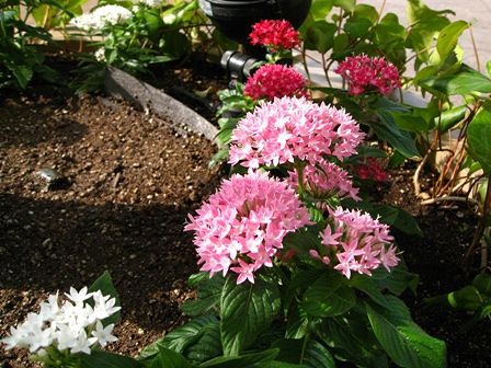 ペンタスの白とピンクと濃いピンクと真っ赤が咲いていました。