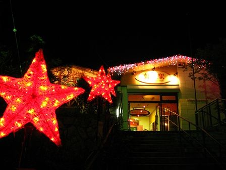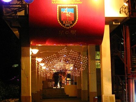 夜のロープウェイの星の駅 実はこの上にレストランがあるのです。