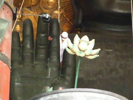 大仏様の右手の指を一本一本丁寧に拭いておられました。