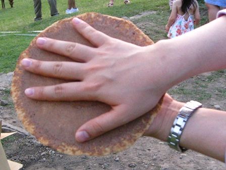 投げるおせんべいは特注でデッカイです。