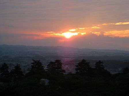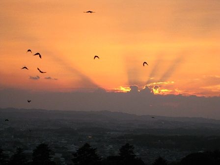 ちょうど雲の間から夕日が現れました。でも、ほんの一瞬でした。
