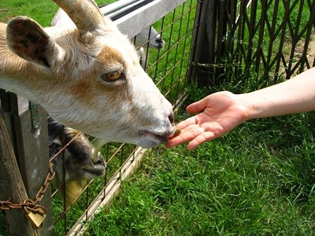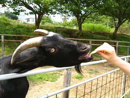 可愛いヤギさんへのえさやり。奈良の鹿さんよりえさが豪華ような(笑)