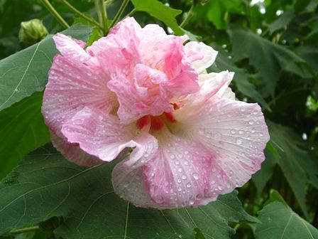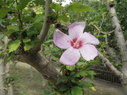 花の開花時期も先に、ムクゲが咲き始めて、少し遅れてフヨウが咲き出します。