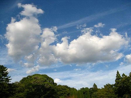 公会堂の中に入ってお庭を眺めてると真っ青な空に真っ白な雲が目に飛び込んで来ました。