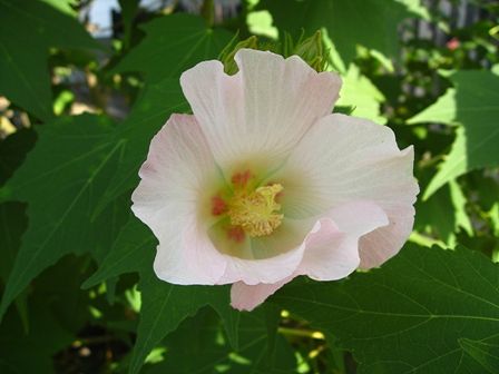 一重の酔芙蓉 白とピンクのグラデーションが良いですね。