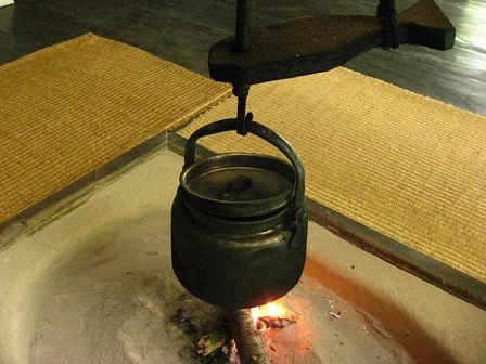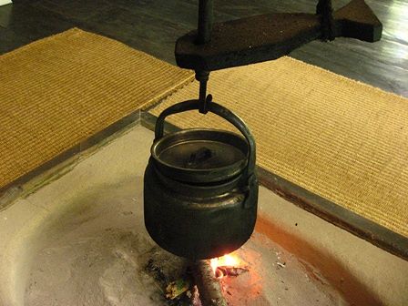 民家の中に入って見学が出来ます。ここではいろりに火が入っていました。