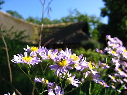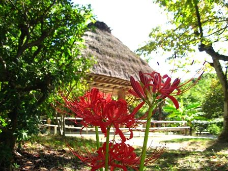 でも、古い民家とコスモス、芙蓉、彼岸花、シオン、と季節の花との