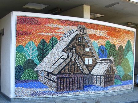 壁のタイルも民家です。