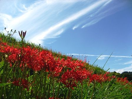 彼岸花は見頃です。きれいな青空ですが、この日はちょっと暑かったですね。