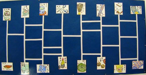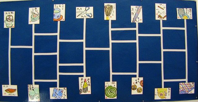 ペアの絵手紙を先生がこのように面白く展示されました。