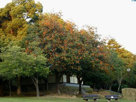 またもやニアミスだったようですね。柿の木の下には同じ自転車がありました。ペンキ塗りたては右側のベンチだけでしょうか? 私が見たときは左側のベンチでおじさんが寝たはりました。