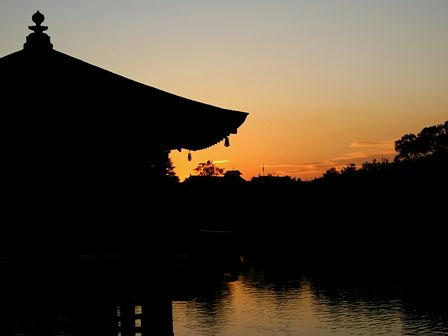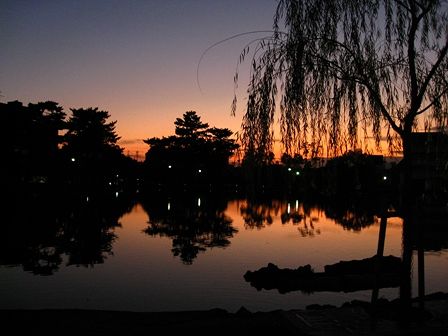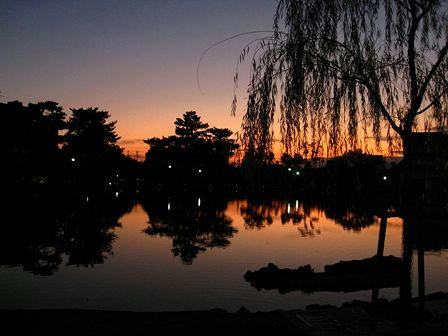 日が暮れるのが早くなりましたね。鷺池の夕景です。シルエットは浮見堂