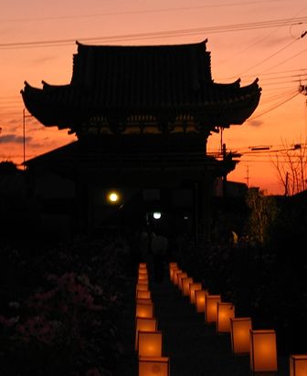 花あかりに行って来られたんですね。夕焼けと楼門の写真が幻想的ですね。