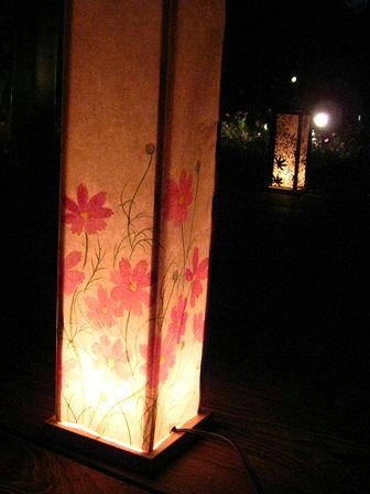 「コスモス花あかり」では夜にあんどん等でコスモスを照らします。