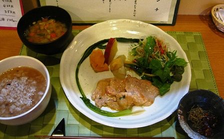 ご飯は古代米か古代米の茶粥のどちらか。私は茶粥にしました。