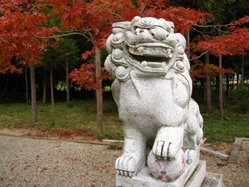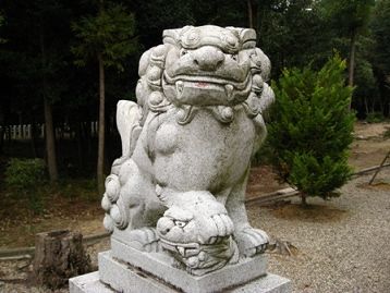 あ形の狛犬は足にマリのような物を押さえています。