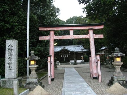 しばらく歩くと八幡神社があります。階段を上るのが大変なので、スルーです。