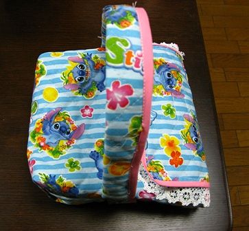 こういうキルティングの布で子供のかばんを作るのは、彼女達が幼稚園以来です。